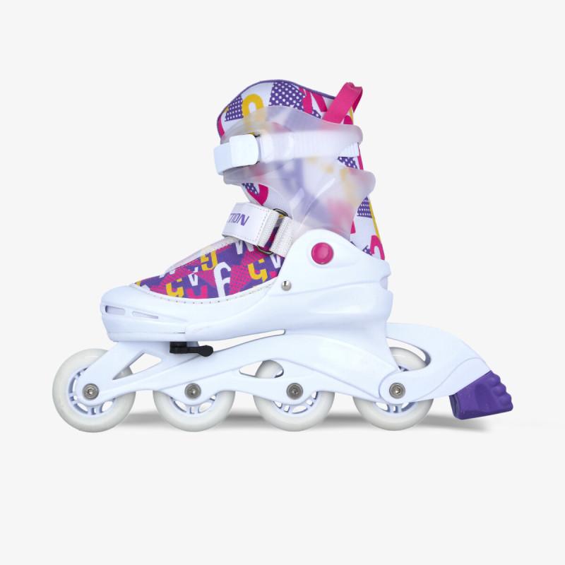 Četiri silikonska točkića na PVC šini pružaju odličnu pokretljivost, a kočnica na desnom roleru pruža kontrolu kretanja. Dubok profil sa čičak trakom, uz dodatno ojačanje sa podesivim kaišem štiti članak i samo stopalo. Atraktivnog dezena i funkcionalni, ovi roleri će pružiti djeci pravu avanturu.