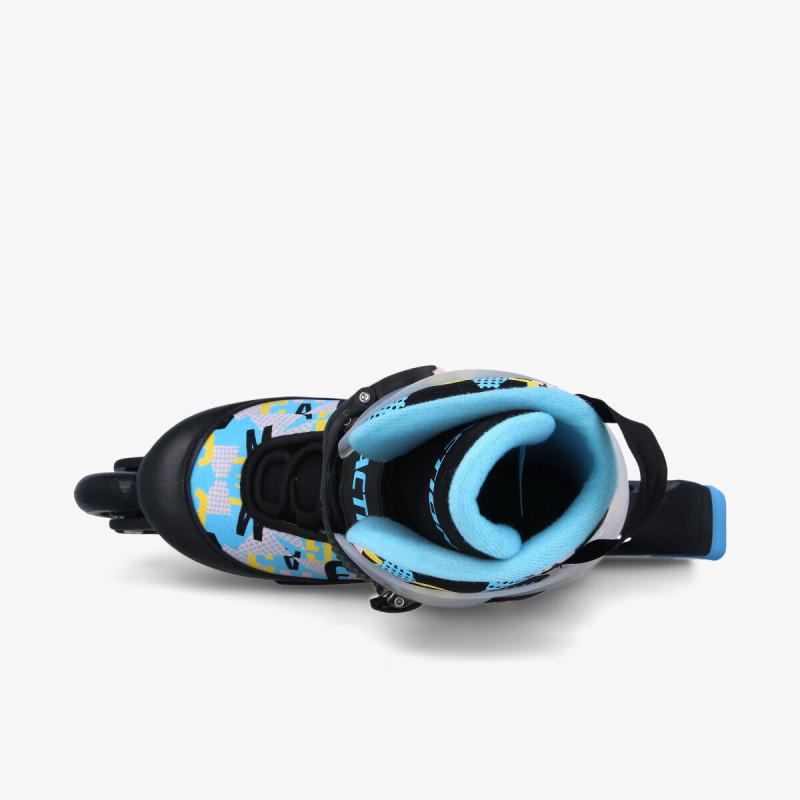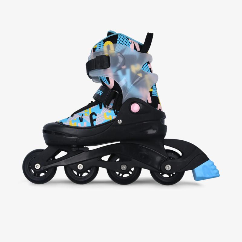 Četiri silikonska točkića na PVC šini pružaju odličnu pokretljivost a kočnica na desnom roleru pruža kontrolu kretanja. Dubok profil sa čičak trakom, uz dodatno ojačanje sa podesivim kaišem štiti članak i samo stopalo. Atraktivnog dezena i funkcionalni, ovi roleri će pružiti djeci pravu avanturu.