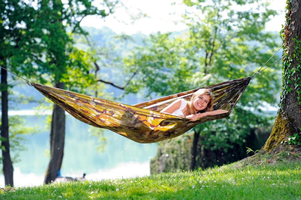 Sa težinom od samo 450 g, AMAZONAS Travel Set je savršen za planinare ili spontane izlete. Sa maksimalnom nosivošću od 120 kg i površinom za ležanje veličine dvokrevetnog kreveta od 275 x 140 cm, možete udobno ležati sami ili se smjestiti s nekim drugim po potrebi.