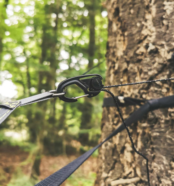 Traveler Tarp se postavlja na tačke pričvršćivanja viseće mreže i zateže (klinovi i zatezna užad s podesivim karabinerima su uključeni). Trapezoidni oblik cerade omogućava dobru cirkulaciju zraka, a istovremeno pruža pouzdanu zaštitu od kiše, sunca i opadajućeg lišća. Sve tačke pričvršćivanja imaju male džepove za odlaganje zateznih užadi. Robusna i svestrana – može se koristiti i bez viseće mreže.
