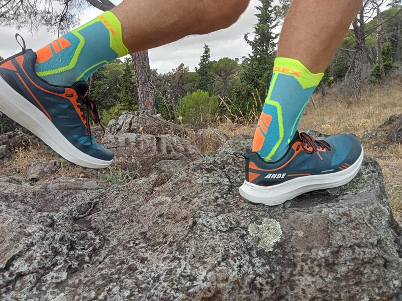 Izuzetno amortizirane patike za trčanje po stazama, razvijene zajedno s našim ultra-trail sportistima, dizajnirane su za najbolje performanse na srednjim i dugim stazama. Debeli EVA međuđon, kreiran korištenjem SUPERCRITCAL NITROGEN FOAMING procesa, pruža izuzetno, dugotrajno amortizaciju bez žrtvovanja responzivnosti. ANDE GRIP gumeni đon visokog prianjanja, s izuzetno agresivnim kramponima, nudi izuzetno prianjanje, posebno na mekom terenu. Gornji dio, izrađen od vrhunske prozirne TPU mreže, pruža neusporedivu prozračnost i estetski je ugodan. Bešavni TPU kavez štiti stopalo od kamenja i drugih grubih površina, a istovremeno pruža potrebnu podršku za čvrsto i optimalno prianjanje.
