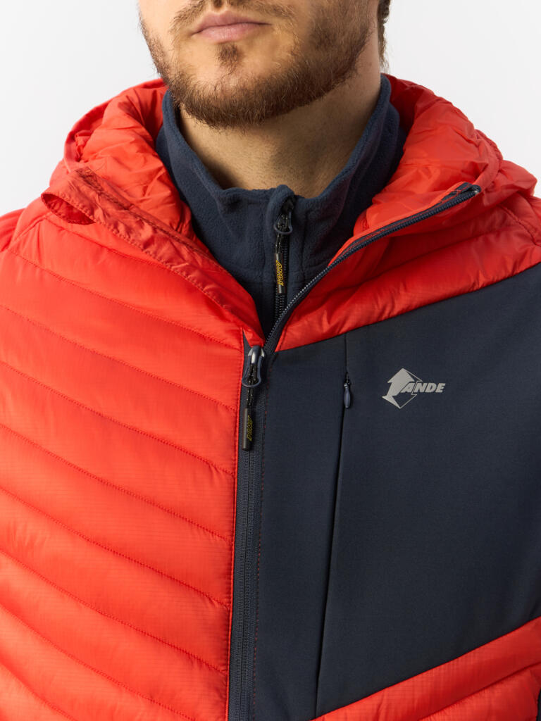Hibridna jakna koja garantuje udobnost i praktičnost, pogodna za sve aktivnosti na otvorenom. Toplina i prozračnost su zagarantovani punjenjem od perja, dok rastezljivi poliesterski umeci sa strane i ispod pazuha osiguravaju izuzetnu slobodu kretanja.