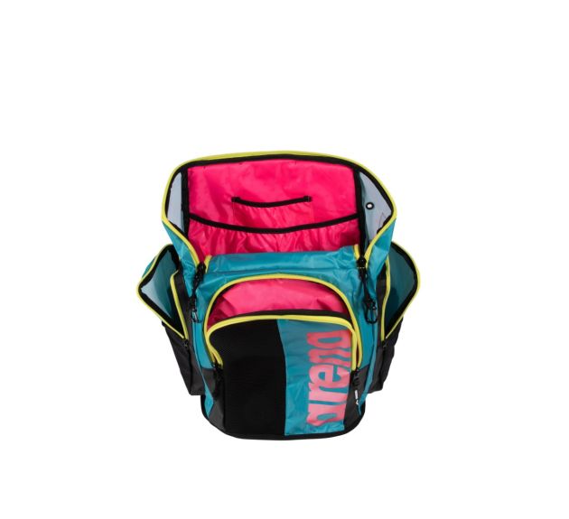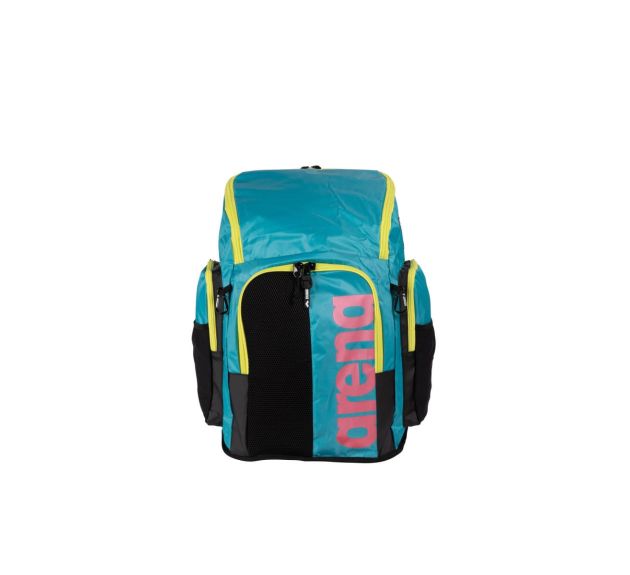 Naš Spiky III 45 ruksak nudi maksimalan prostor u kompaktnom dizajnu. Dizajniran za jednostavan pristup i organizaciju, ovaj ruksak se otvara odozgo i ima mrežaste pregrade koje pomažu u kontroli vlage nakon plivanja ili treninga. Izrađen je od vodoodbojnog materijala i ojačan na dnu, pa ne morate brinuti ako ga spustite na pod svlačionice. Više džepova omogućava sigurno čuvanje svih vaših stvari. Dostupan je u upečatljivim, visokokontrastnim kombinacijama boja. Uključena je i besplatna torba za plivačku opremu.