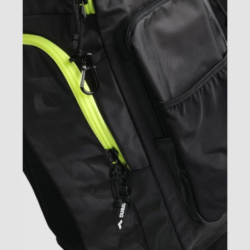 Naš Spiky III 45 ruksak nudi maksimalan prostor u kompaktnom dizajnu. Dizajniran za jednostavan pristup i organizaciju, ovaj ruksak se otvara odozgo i ima mrežaste pregrade koje pomažu u kontroli vlage nakon plivanja ili treninga. Izrađen je od vodoodbojnog materijala i ojačan na dnu, pa ne morate brinuti ako ga spustite na pod svlačionice. Više džepova omogućava sigurno čuvanje svih vaših stvari. Dostupan je u upečatljivim, visokokontrastnim kombinacijama boja. Uključena je i besplatna torba za plivačku opremu.