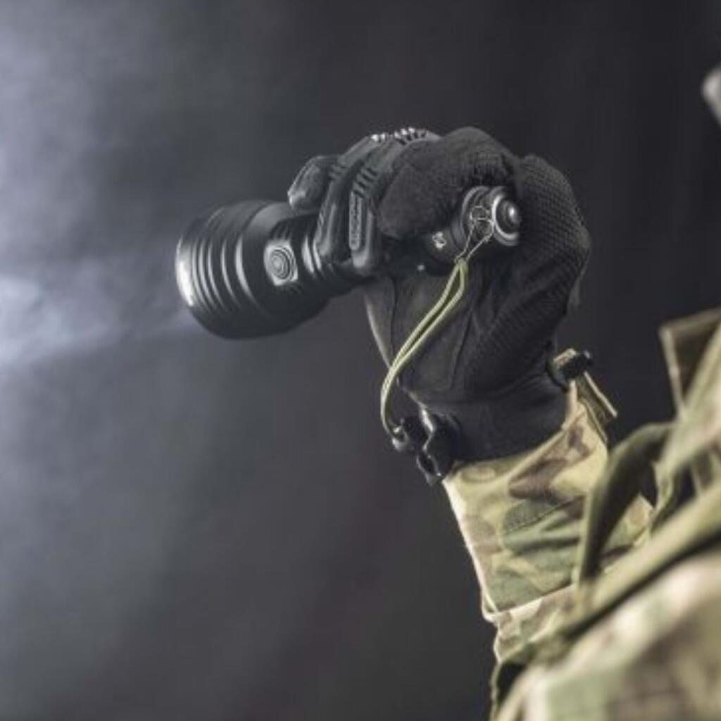 Dugme na poklopcu pozadi i priložena oprema omogućavaju praktičnu upotrebu kao ručne taktičke lampe