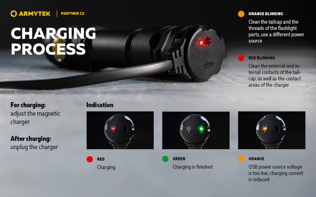 Partner C2 je spremno visoko-tehnološko rješenje od Armyteka. Lampa se isporučuje sa brzim magnetnim punjačem i 18650 Li-Ion baterijom kapaciteta 3200 mAh.