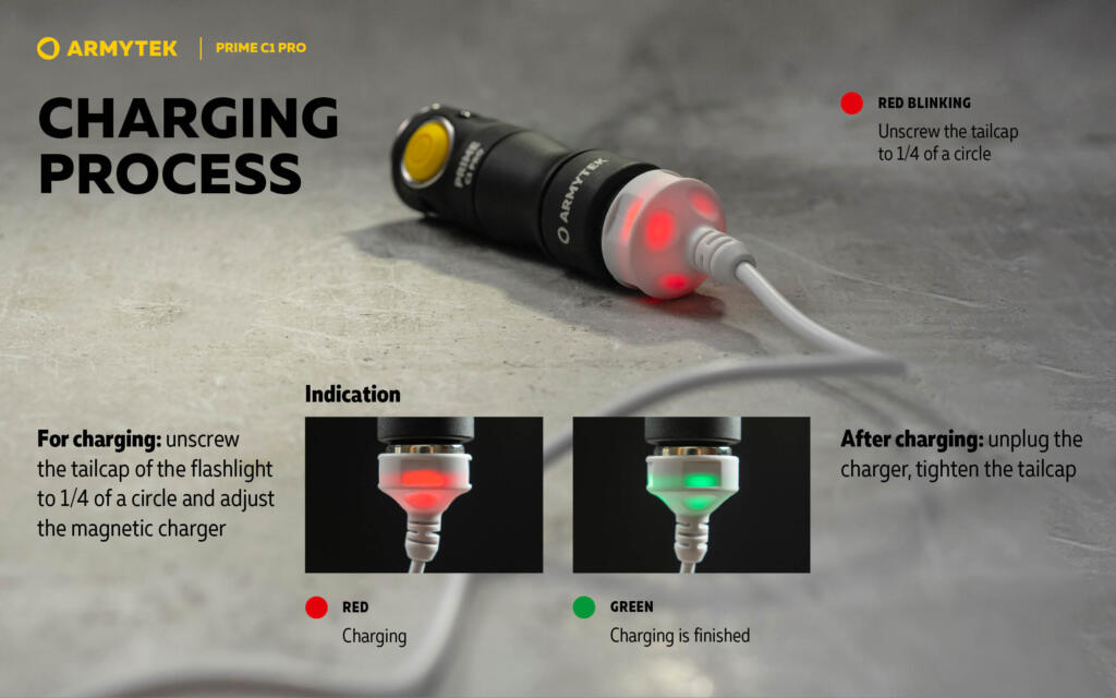 Spremno za upotrebu: uključena 18350 Li-Ion baterija kapaciteta 900 mAh i magnetni USB punjač.