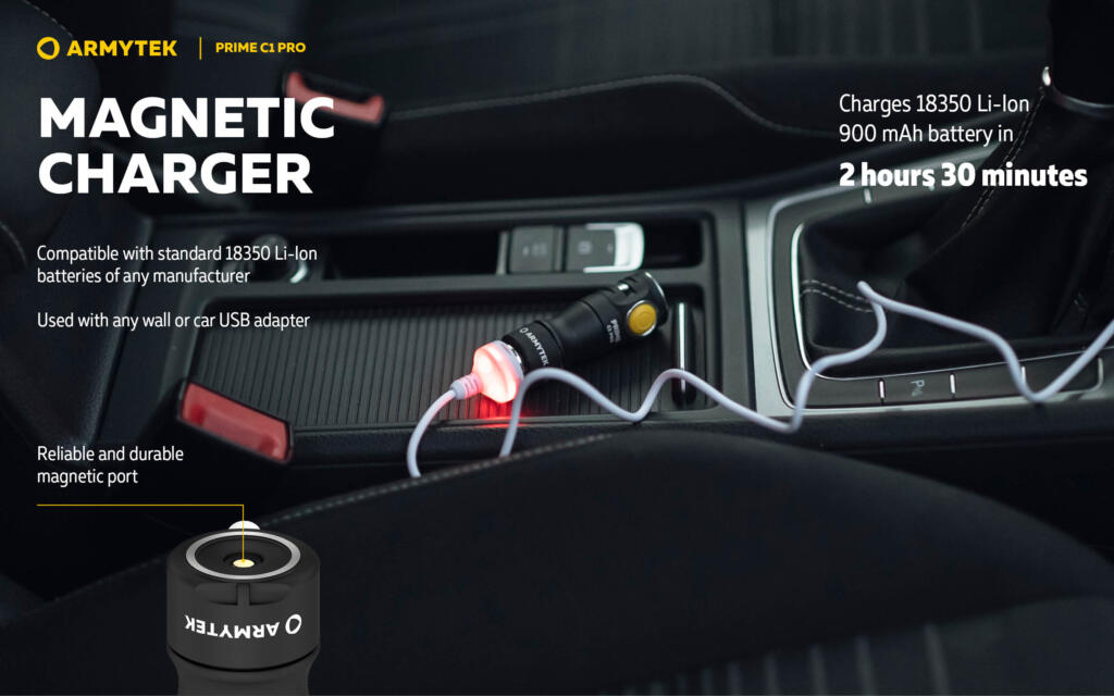 Inovativna tehnologija omogućava korištenje bilo koje standardne 18350 Li-Ion baterije. Potpuna zaštita od kratkog spoja čak i u slučaju kontakta magnetnog konektora sa metalnim predmetima.