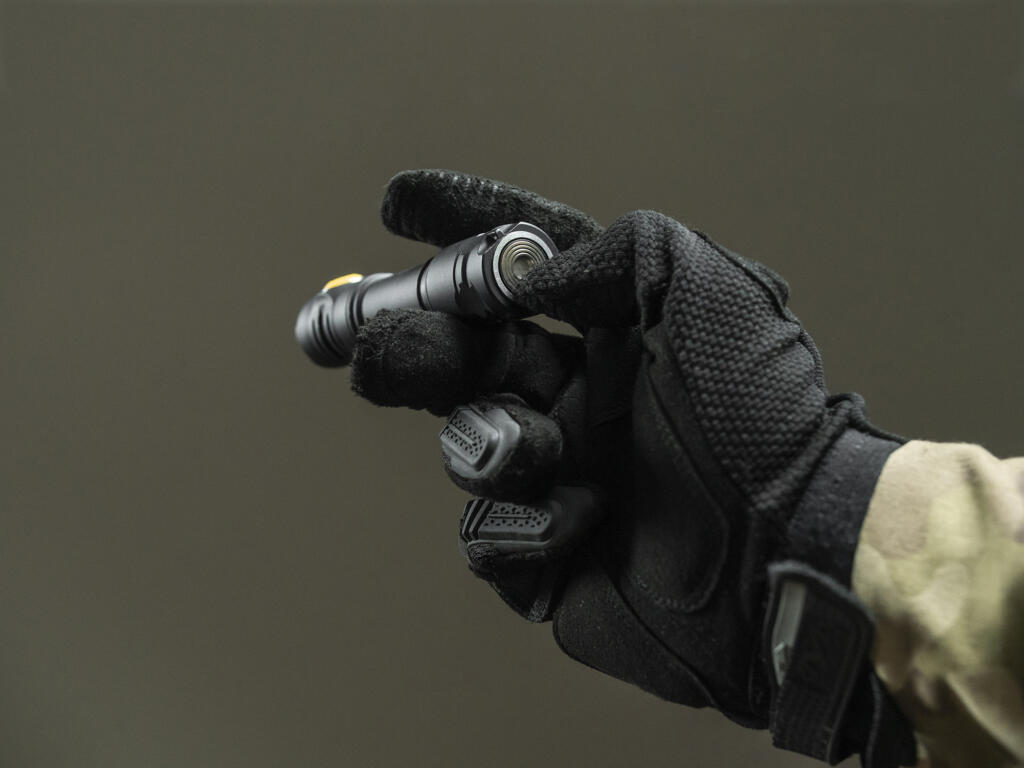 Ravno taktičko dugme: uključuje i isključuje lampu tokom taktičkog držanja, sa jedinstvenim integrisanim magnetnim priključkom za punjenje.