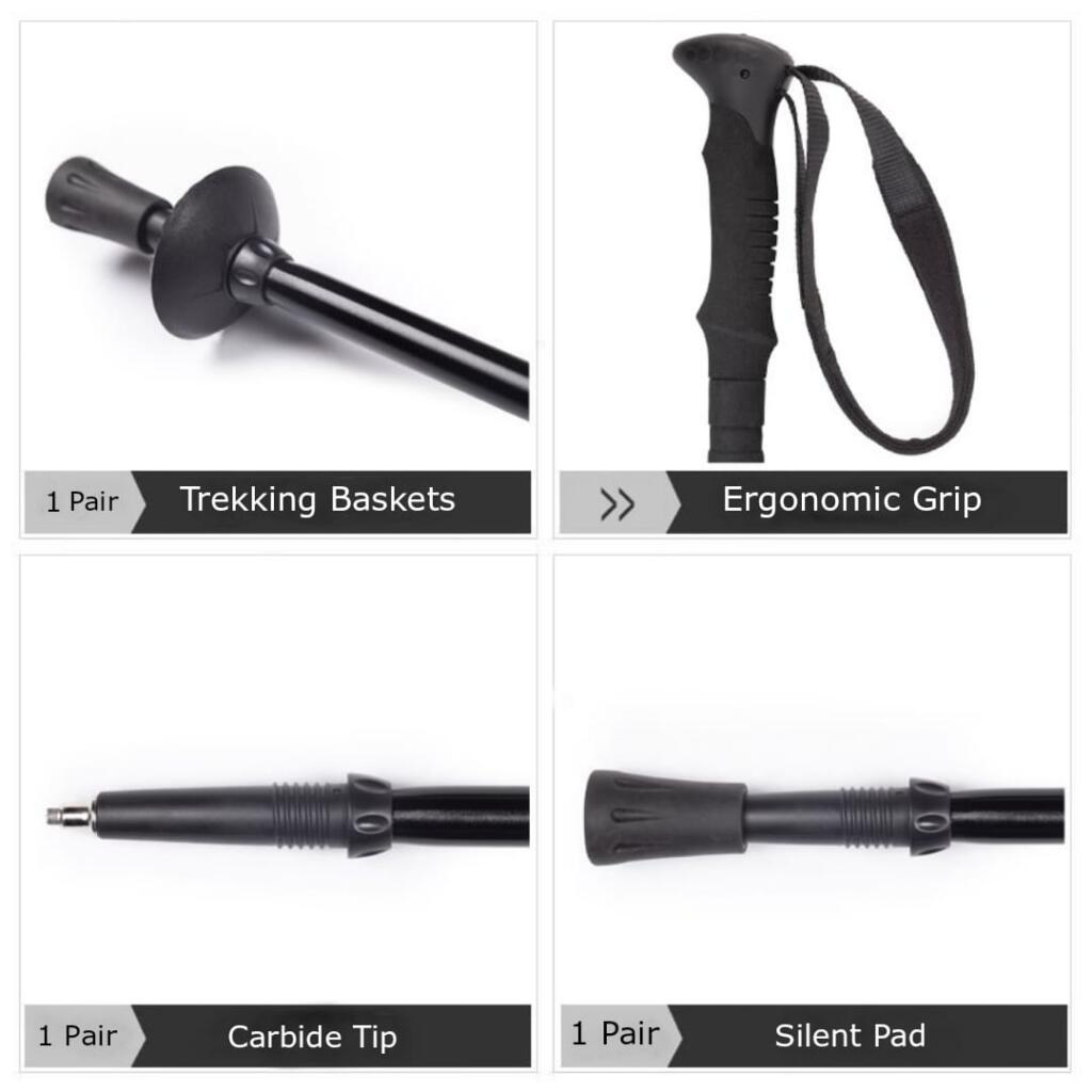 • Štapovi imaju preklopni dizajn u 3 segmenta; sklopljeni su dugi 41 cm. Prečnik segmenata je 15 mm