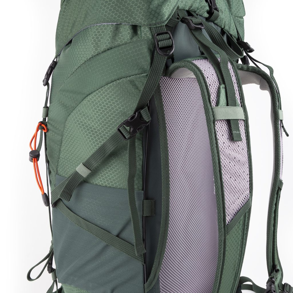 Ergonomski leđa u mrežastoj tkanini pružaju izuzetnu prozračnost. Dvostruka podstava sa oblikovanom gustoćom osigurava odličnu prozračnost. Veliki unutrašnji prostor čini ga korisnim na terenu. Potpuno dizajniran i veliki ruksak za sve ljubitelje planinarenja koji žele ponijeti svu svoju opremu. Sadrži petlje i pristupačan vanjski džep za hitne potrebe. Ovaj dizajn ruksaka je doslovno napravljen za entuzijaste prirode.