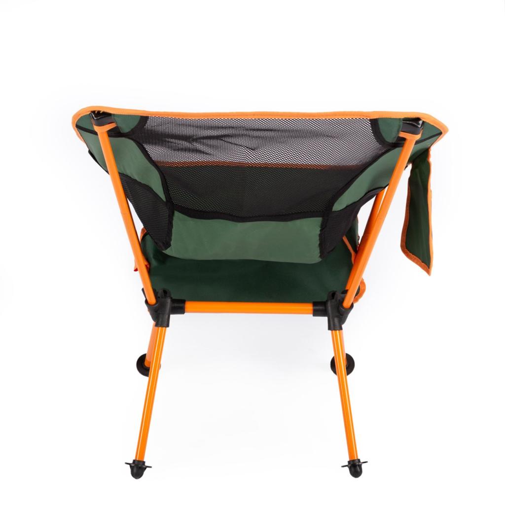 Evolite sklopiva mini kamp stolica, zahvaljujući svojoj konstrukciji, lako se nosi u ruksaku, kod kuće, u vozilu ili na motoru jer zauzima vrlo malo prostora. Brzo se postavlja, ima izdržljivo metalno tijelo, čvrstu mrežastu tkaninu koja sprečava znojenje, pretinac za novine i sitnice, ojačano gvožđe koje povećava nosivost, te torbu s rajsferšlusom izrađenu od istog materijala kao i stolica. Na nogarama se nalaze plastične baze.