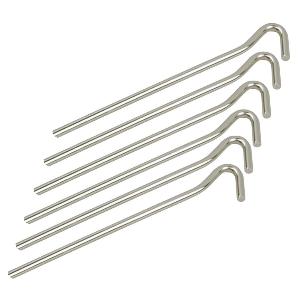 Zahvaljujući ovim čeličnim klinovima, koji su dodatno otporni na savijanje, vaš šator će biti postavljen čvršće. Ovi klinovi, koji su dugi 20 cm i imaju prečnik od 5 mm, potpuno su izrađeni od čelika. U pakovanju se nalazi 6 klinova.
