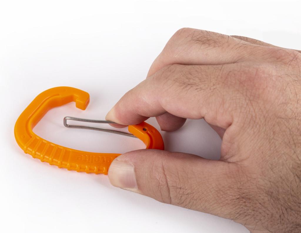 Ovi karabinčići, dostupni u različitim bojama i napravljeni od ultra-lagane čvrste plastike, dizajnirani su za pričvršćivanje manjih predmeta (telefona, ključeva, kamperskih stvari) na zipove prijenosnih predmeta kao što su torbe ili koferi. Uz višefunkcionalne karabinčiće, sada će biti lakše pristupiti svim malim alatima koji vam padaju na pamet.