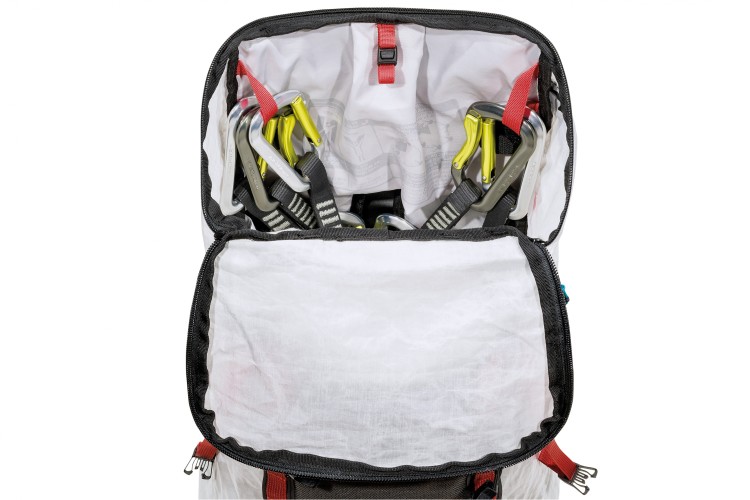 Dodaci: Gornji pristup glavnom pretincu sa rajsferšlusom | Dva držača za cepine | Prednji držač za skije | Unutrašnji držač za sondicu/lopatu | Bočne kompresione trake | Gornji držač za užad s dodatnim trakama | Pojas za grudi s integrisanom zviždaljkom | Petlje za opremu na pojasu i unutar leđa | Kompatibilan s H2 Bag sustavom za hidrataciju | Prednja traka za umetanje dodatnih traka i odličnu organizaciju opreme spolja | Prednji zaštitni umetak u Super Fabric® | SOS upute | Kompatibilan s držačem kacige