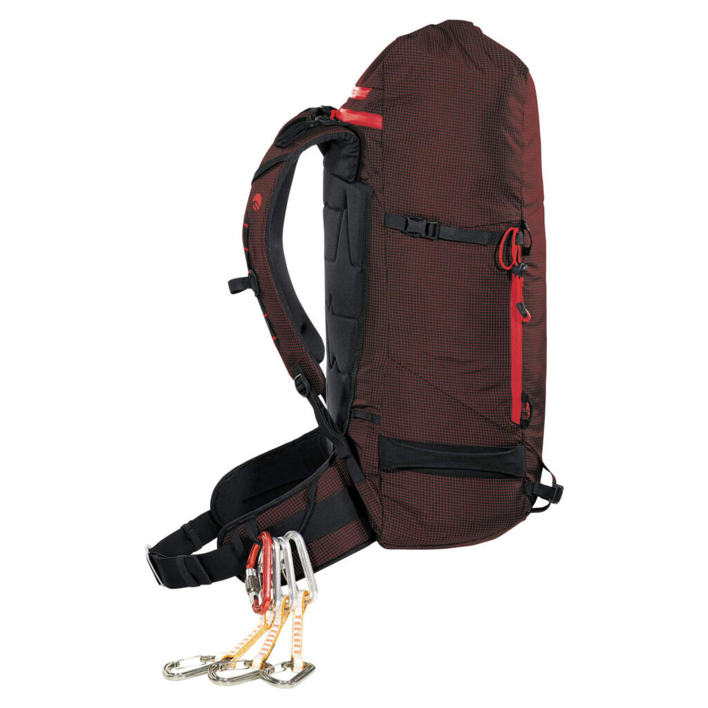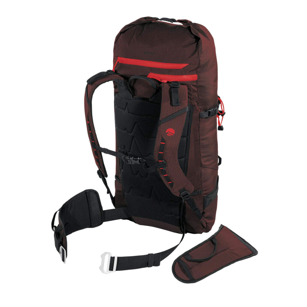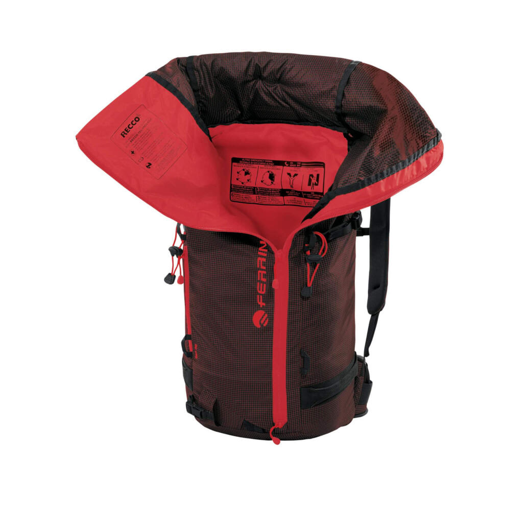 Dodaci: Integrisani Recco reflektor | Vodootporni prednji rajsferšlus | “Roll-up” gornje zatvaranje s sigurnosnim Velcro-om | Prednji i bočni sistem za nošenje skija | Dvostruki držač za cepine | Pojas za grudi s hitnim zviždaljkom | Bočne kompresione trake | Petlje za opremu na pojasu | Sakrivene petlje za opremu | Kompatibilan s H2 Bag sistemom za hidrataciju | SOS upute | Kompatibilan s držačem kacige