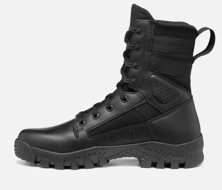 Robusne čizme za policijske i sigurnosne službe sa D3O tehnologijom za apsorpciju udara, smanjen umor i potpunu zaštitu. Dizajnirane za zahtjevne taktičke misije, T8 DEFENSE LE nude vrhunsku zaštitu, izdržljivost i dugotrajan komfor čak i tokom produženog nošenja u izazovnim okruženjima. Ove čvrste čizme opremljene su D3O® tehnologijom u ulošku za poboljšanu apsorpciju udara, smanjenje umora i dodatnu podršku. VIBRAM® Atlas đon osigurava 360-stepeni prianjak na grubim terenima i pri aktivnostima s užetom, pružajući optimalnu stabilnost i izdržljivost. Zahvaljujući gornjištu od punozrnate kože i poliestera, te D3O® ojačanjima u zoni zgloba i jezika, T8 DEFENSE LE čizme nude izuzetnu zaštitu, što ih čini idealnim izborom za visokoperformansne misije u najzahtjevnijim uslovima.