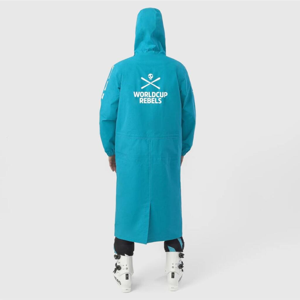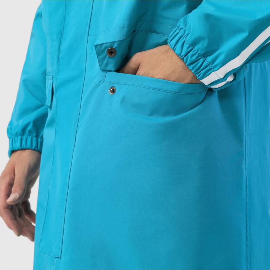 RACE RAIN COAT do koljena s kapuljačom jedan je od najprodavanijih modela i pruža odličnu zaštitu od kiše i vjetra. Jakna je izrađena od izdržljivog i vodoodbojnog najlona, ima lijepljene šavove, a zahvaljujući dvosmjernom patentnom zatvaraču sprijeda i preklopu na vrhu, lako se i brzo otkopčava i zakopčava. Dugmad s unutrašnje strane omogućavaju podešavanje dužine, tako da se jakna može nositi i tokom skijanja.
