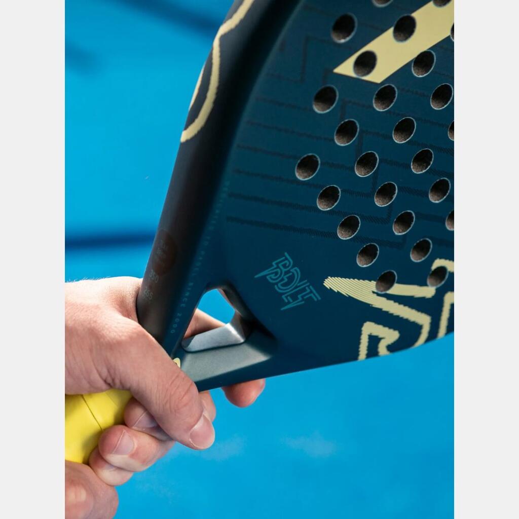 Ako ste rekreativni igrač koji tek počinje takmičenja u klubu i volite boje, privucite pažnju s BOLT reketom, zahvaljujući njegovom smjelom dizajnu. Ovaj oversized reket u obliku suze ne samo da će osvježiti vašu igru, već će je i pojačati, pružajući jednostavnu snagu i mekan osjećaj prilikom udarca, uz visok nivo tolerancije i oprosta grešaka. Dok fiberglas površina za udarac pruža mekši osjećaj i kontrolu, veća sweetspot zona nudi dodatnu toleranciju i oprost.