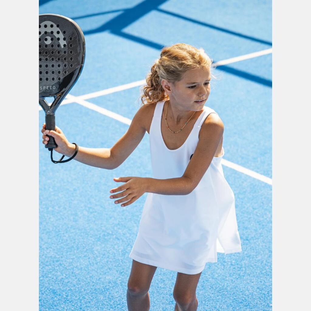 SPEED JUNIOR padel reket dizajniran je za takmičarske juniore koji žele igru sa osjećajem, preciznošću i napadačkom brzinom. Osjećaj, preciznost i brzina spajaju se u unaprijeđenom SPEED JUNIOR padel reketu, koji se preporučuje takmičarima od 10 godina i starijima. Lakši je i ima niži balans za bolju upravljivost – što ga čini lakšim za korištenje u odnosu na modele za odrasle – a ovaj predimenzionirani reket u obliku suze pruža i dodatnu udobnost. Napravljen je od Power Foam pjene i ima udarnu površinu od fiberglasa za mekši osjećaj i bolju kontrolu. Innegra tehnologija poboljšava apsorpciju udara i stabilnost, dok Integrated Protector System produžava vijek trajanja reketa štiteći ga od oštećenja i ogrebotina. Dizajn je osvježen za moderan, premium i prepoznatljiv izgled.