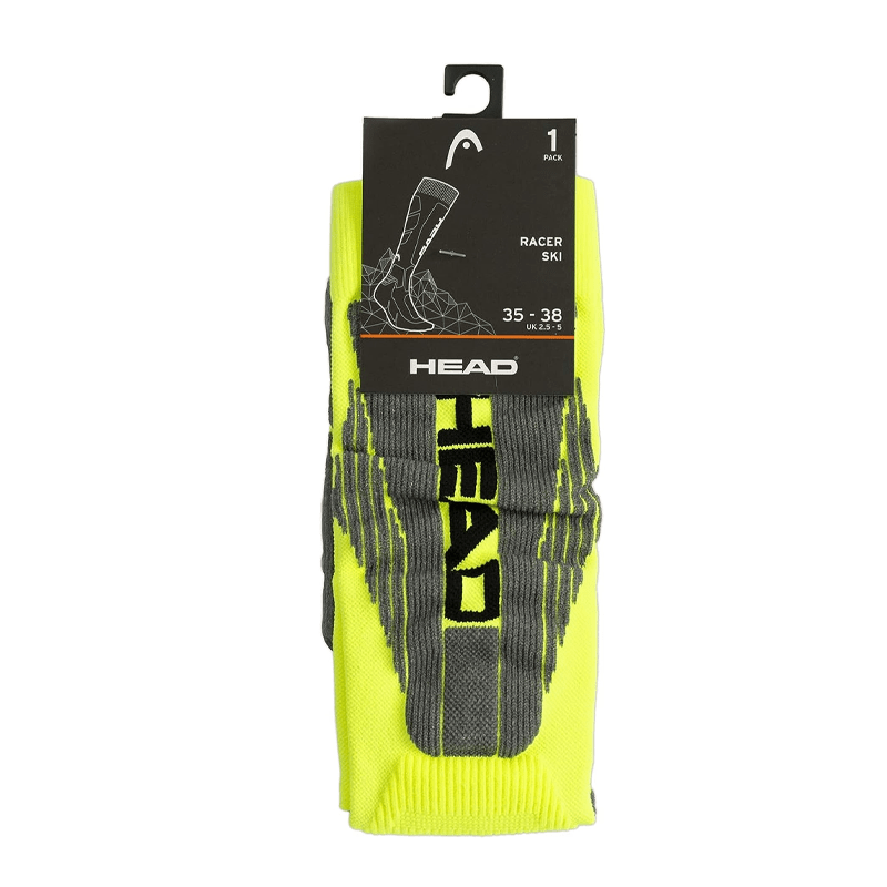 Skijaške čarape Head Unisex Racer do koljena (jedno pakiranje) razvijene su za iskusne skijaše. Inspiriran Head Racer skijaškom serijom. Izuzetno tanka konstrukcija od mikrovlakana omogućuje vrhunsku kontrolu u vašim čizmama. Zaštita svoda i anatomski oblikovana lijeva i desna stopala osiguravaju optimalno oblikovanje. Kako biste bili svježi i suhi na padinama, ove čarape imaju ergonomski postavljena područja ventilacije, a tehnologija odvodnje vlage osigurava upijanje znoja i transport na površinu. Ulošci su anatomski dizajnirani za lijevo i desno stopalo, dajući prvoklasan osjećaj. Ove snažne čarape napravljene su za jednu i jednu brzinu.