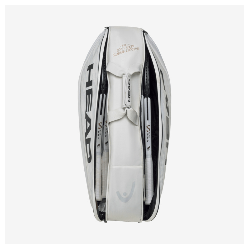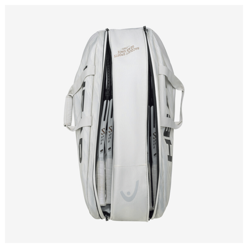 Gotovo bela i u trendu, novi i luksuzni dizajn torbe za tenis PRO X RACQUET BAG XL YUBK – koji uključuje print SPEED kao i potpis i logo Novaka Đokovića – projektuje Novakove besprekorno visoke standarde. Izvanredan oblik sa zaobljenim ivicama doprinosi vrhunskoj privlačnosti torbe namenjene fanovima Đokovića, igračima koji biraju seriju reketa SPEED koju on podržava, i svima koji su posvećeni visokim performansama. Ima dovoljno prostora u torbi u koju može stati do 12 reketa, s CCT+ tehnologijom kontrole klime u jednom od glavnih odjeljaka koja ih štiti od ekstremnih temperatura.