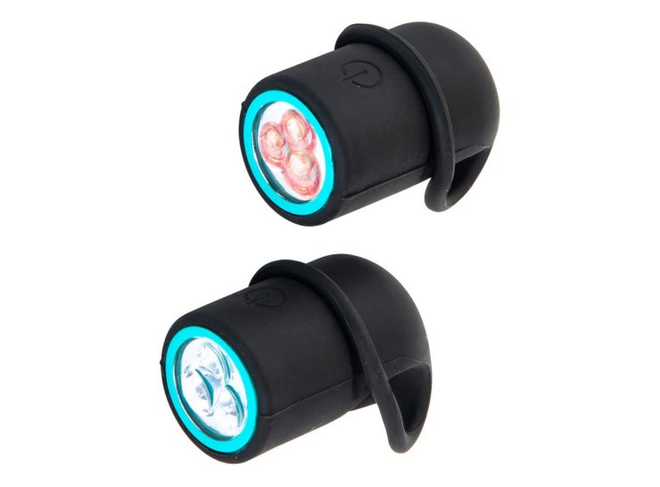 Silikonski, kompaktni 3505005 set svjetala, sa puno energije, za bicikle. Mini veličina-maxi efekat. Osvjetljenje se lako montira na svaki bicikl uz pomoć gumenih traka i nudi optimalno rešenje za bezbjednost. Funkcije: treperenje/stabilno/isključeno.