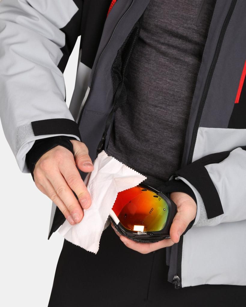Tri vanjska džepa s patentnim zatvaračem, unutarnji džep s krpom za čišćenje naočala i džep za skijašku kartu.