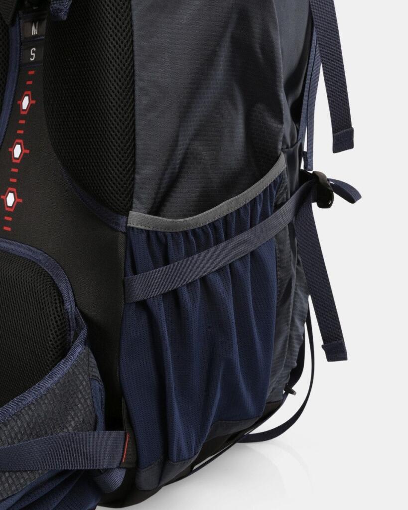 Ostalo: Podesive naramenice, prsni kaiš sa zviždaljkom za signalizaciju, kompatibilan sa sistemom za vodu (hydration system), traka za pričvršćivanje cepina i planinarskih štapova, integrisani pokrivač protiv kiše, podstavljene i podesive naramenice, podstavljeni pojas za kukove s džepovima na zatvarač