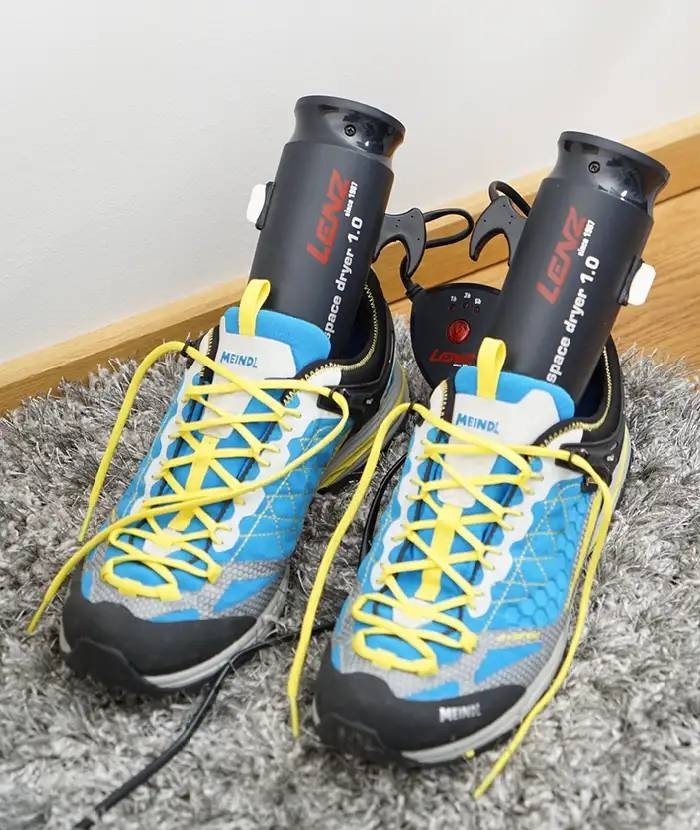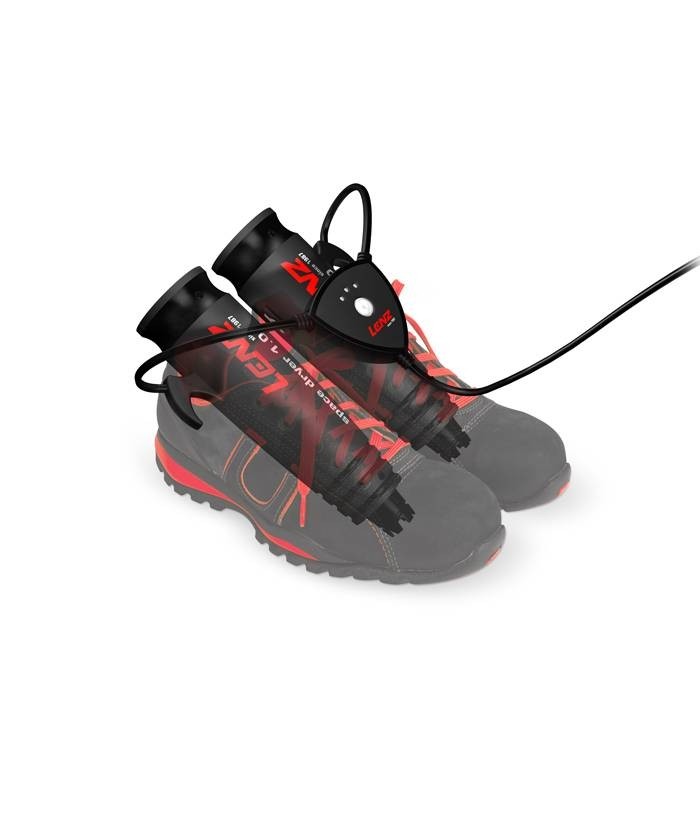 Lenz Space Dryer 1.0 je idealan za sušenje cipela, tekstila i rukavica bilo koje veličine. Kompaktan je, fleksibilan i tih zahvaljujući svojim dvjema mlaznicama, a kućište mu je izrađeno od čvrste plastike. Sušilica je temperaturno kontrolirana i ima zaštitu od pregrijavanja, zbog čega je sušenje posebno nježno prema materijalu i produžava vijek trajanja proizvoda. Osim toga, bakterije i klice se uklanjaju s pogodnog tla za njihovo razmnožavanje, a neugodni mirisi se značajno smanjuju. Za visoke cipele, poput jahaćih čizama, gumenih ili zimskih čizama, ribarskih hlača ili lovačkih čizama, može se dodatno kupiti i opcionalni nastavak.