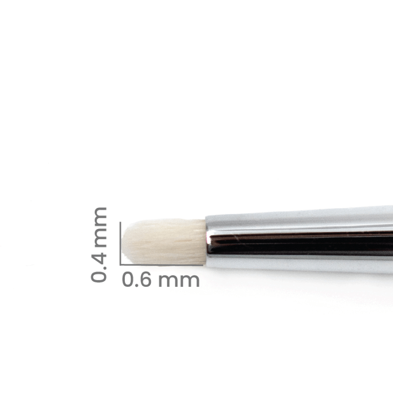 Ovalna četkica, najmanja blenderica u kolekciji, odlična za male detalje oko oka. Dužina dlake je 8mm, prečnika 4mm.