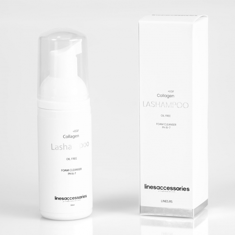 Posebna pjena za čišćenje sa epidermalnim faktorom rasta (EGF) – vrlo efikasno uklanja ulja i nečistoće koje su se nakupile na liniji trepavica, a da pritom ne šteti esktenzijama. Pravilno čišćenje je neophodno u prevenciji očnih infekcija – do kojih dolazi isključivo zbog nehigijene okoloočne regije tj. poremećenog PH balansa. Ovaj proizvod je “must have” za sve one koji nose ekstenzije svilenih trepavica kako bi održavali higijenu i produžili trajanje nadogradnje.