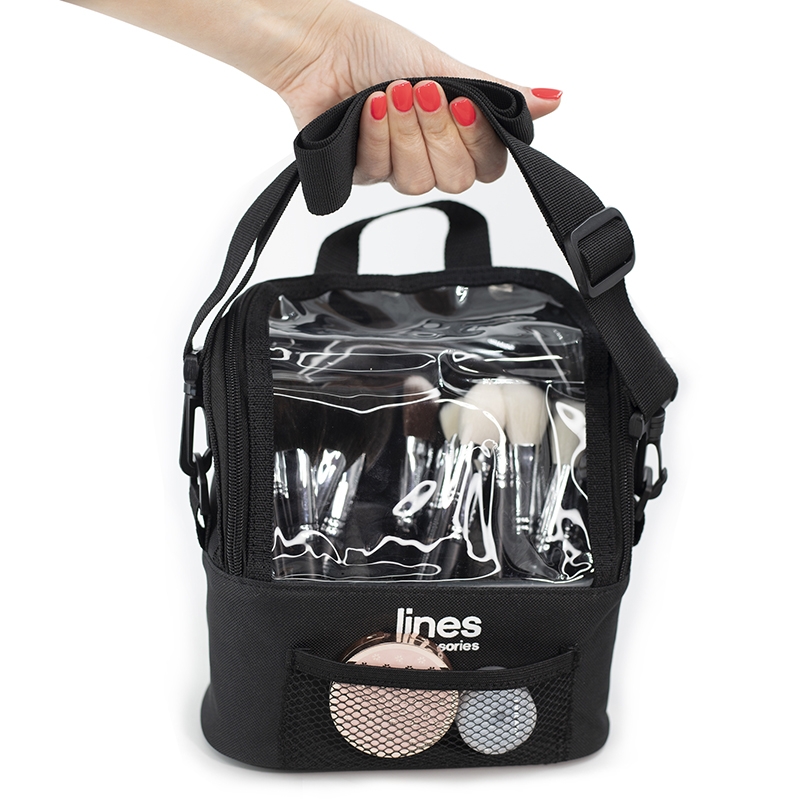 Donja polovina torbice je od čvrstog nesavitljivog materijala, sa tri sekcije – proizvodi su dobro separisani tako da ne postoji mogućnost miješanja. Torbica sadrži i kaiš koji ima dvostruku primjenu – uz pomoć njega može se nositi na ramenu ili oko struka. Prednji dio torbice (pozicija logoa) ima džepni prostor dim.13x5cm.