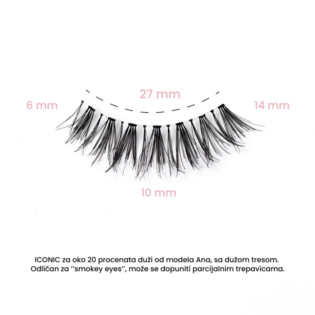 ICONIC za oko 20 procenata duži od modela Ana, sa dužom tresom. Odličan za ’’smokey eyes’’, može se dopuniti parcijalnim trepavicama.