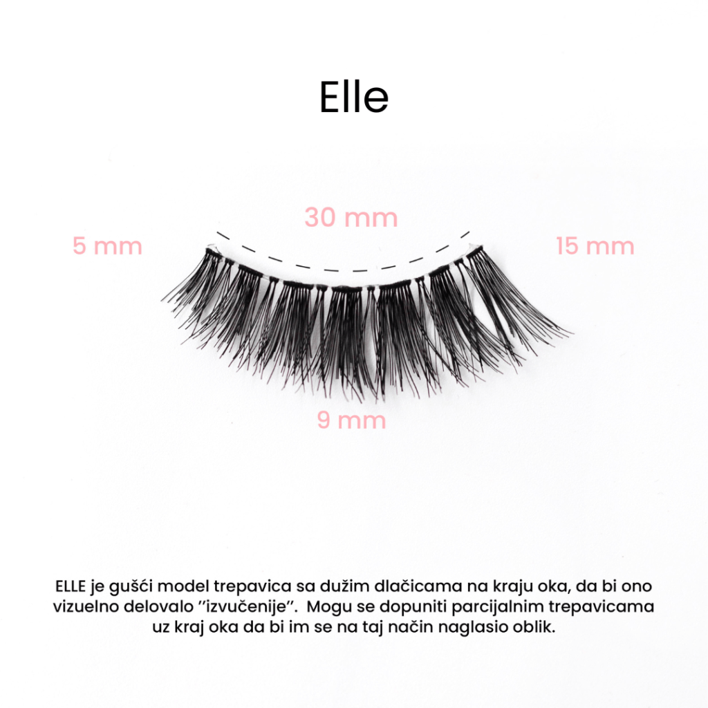 ELLE je gušći model trepavica sa dužim dlačicama na kraju oka, da bi ono vizuelno djelovalo ’’izvučenije’’.