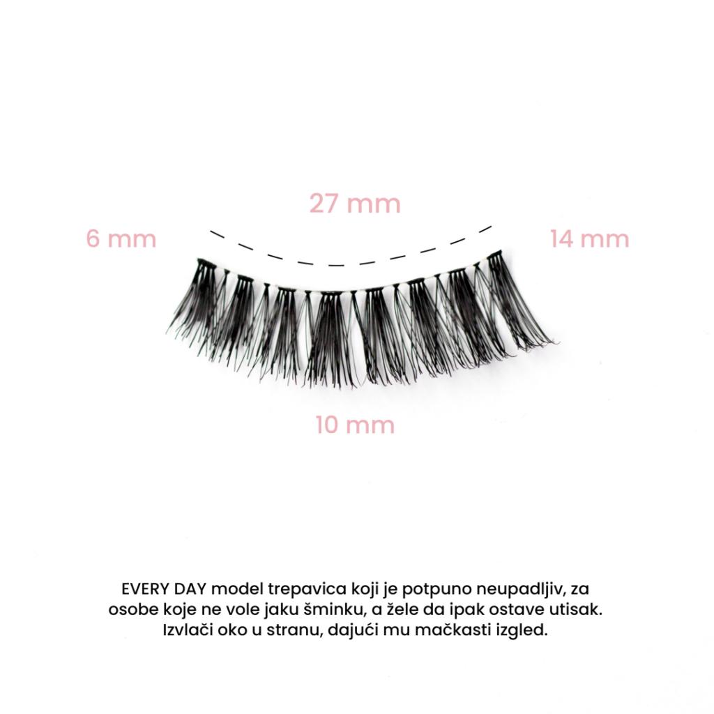 EVERY DAY model veštačkih trepavica je potpuno neupadljiv, za osobe koje ne vole jaku šminku, a ipak žele da ostave utisak. Izvlači oko u stranu, dajući mu mačkasti izgled.