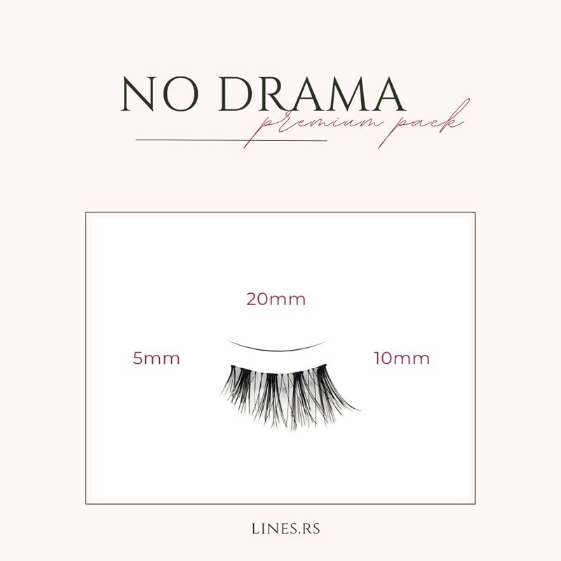 No drama je model trepavica koji se postavlja na vanjski dio kapka kako bi se izdužilo oko. Lagane su, udobne, vrlo jednostavne za postavljanje. Idealne su za svakodnevni izgled ili blagi glamur.