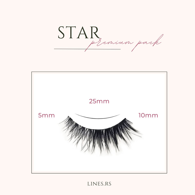 Star vještačke trepavice donose dramatičan volumen bez osjećaja težine. Iako su guste i efektne, pažljivo su izrađene od laganih vlakana koja ne opterećuju kapak niti narušavaju prirodan osjećaj oka.