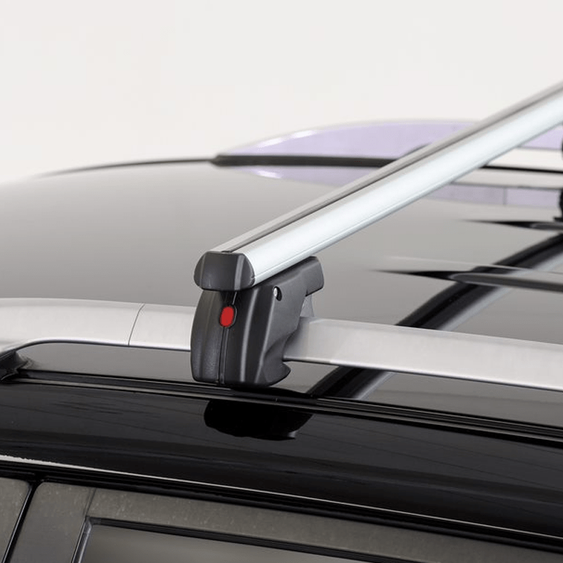 Aluminijumske krovne šipke za automobile sa podignutim šinama, opremljene protivprovalnim sistemom, kompletno montirane, zajedno sa svim potrebnim alatima za brzu i jednostavnu montažu.