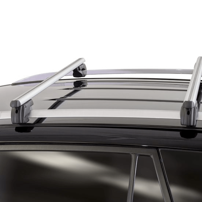 Aluminijumske krovne šipke za automobile sa podignutim šinama, opremljene protivprovalnim sistemom, kompletno montirane, zajedno sa svim potrebnim alatima za brzu i jednostavnu montažu.