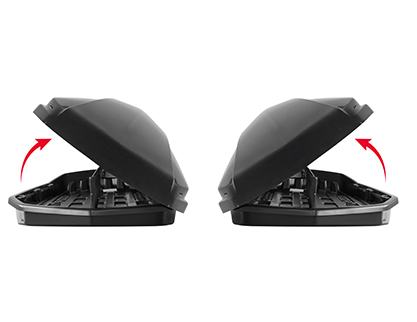 Krovni kofer s ekskluzivnim i aerodinamičnim dizajnom, proučavana kako bi optimizirala protok zraka oko kutije. Sustav s centralnim zaključavanjem na 3 točke nudi maksimalnu sigurnost. Brz i siguran sustav montaže unutar krovnih nosača pomoću “T” vijaka. Maksimalna nosivost 75 kg, unutarnji kapacitet 500 litara. Dvostruko otvaranje s obje strane.