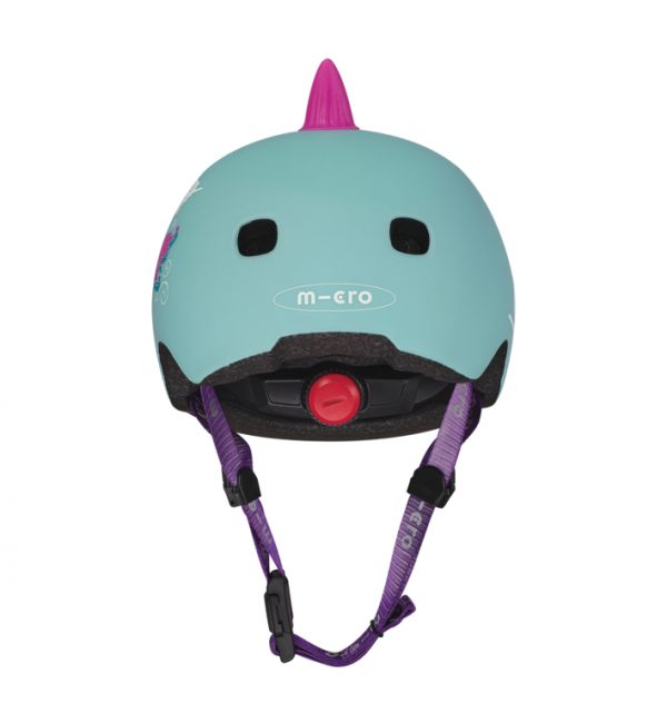 Osim toga, u odnosu na ranije verzije, kaciga na pozadini ima i sigurnosno LED svjetlo sa tri moguća načina svijetljenja, koje osim što je zabavno, pomaže u boljoj uočljivosti vozača romobila od strane drugih učesnika u saobraćaju. Takođe, ova kaciga posjeduje vrlo praktično i udobno magnetno kopčanje.