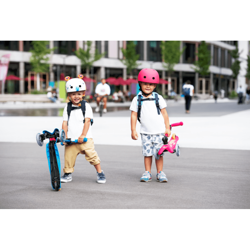 Djeca, roditelji i stručnjaci su ovaj romobil na svjetskim sajmovima više puta izabrali kao romobil godine! Ovaj romobil – trotinet ne samo da potiče kretanje i vježbanje, već pomaže djeci poboljšati ravnotežu, koordinaciju i motoričke sposobnosti. Mini Micro Deluxe posebno je razvijen za malu djecu i predškolce u saradnji sa švicarskim medicinskim stručnjacima. Drška T-upravljača čini ga još sigurnijim i ista je sklopiva – na samo jedan klik, što dodatno olakšava skladištenje ili kombinaciju sa drugim transportima.