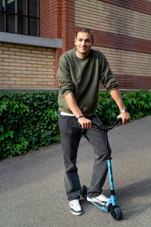 Moderan skuter sa pojačanom zadnjom kočnicom idealan je za duže i strmije vožnje nizbrdo, na svim vrstama podloga. Ekstra široki PU kotači pružaju jedinstveno iskustvo vožnje i maksimalnu stabilnost. Lagani i kompaktni skuter se može lako sklopiti i stoga se može lako transportovati javnim prijevozom ili odložiti.
