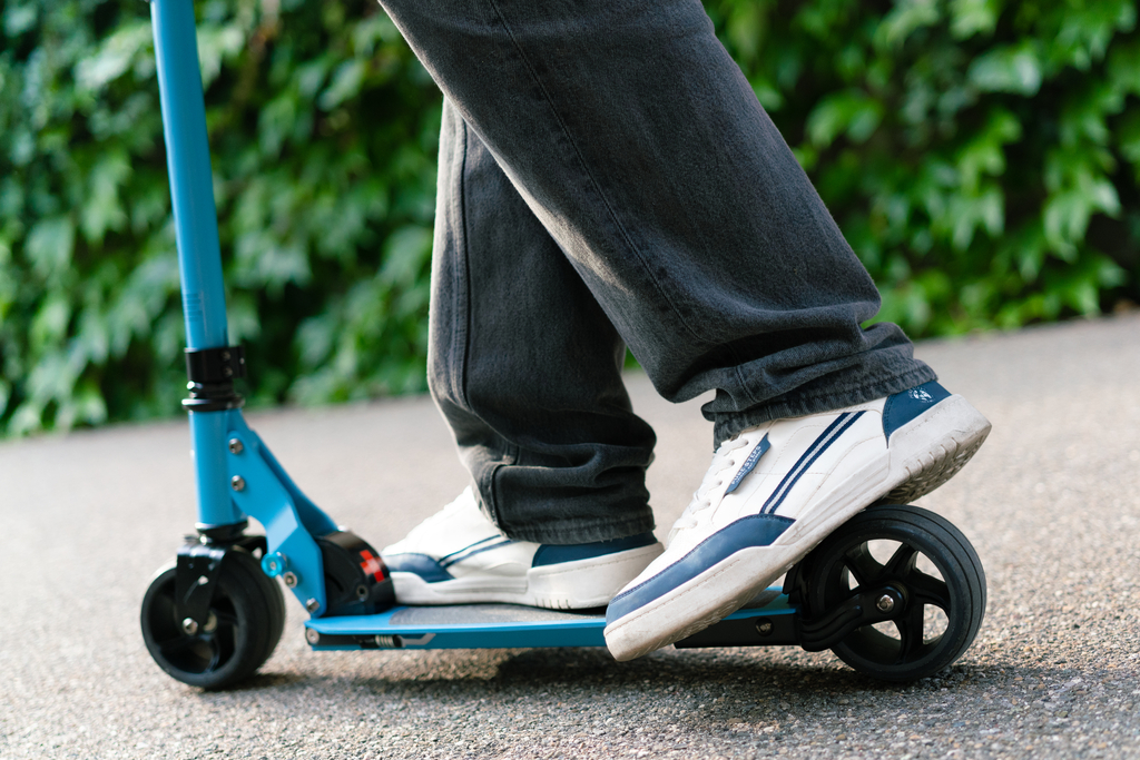 Moderan skuter sa pojačanom zadnjom kočnicom idealan je za duže i strmije vožnje nizbrdo, na svim vrstama podloga. Ekstra široki PU kotači pružaju jedinstveno iskustvo vožnje i maksimalnu stabilnost. Lagani i kompaktni skuter se može lako sklopiti i stoga se može lako transportovati javnim prijevozom ili odložiti.