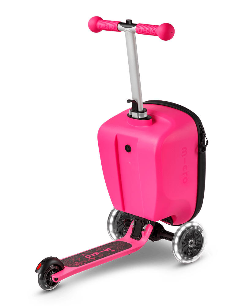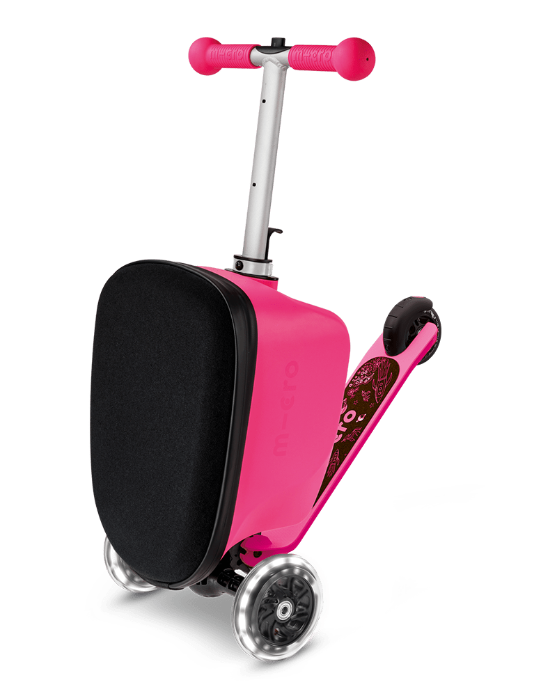 Micro Scooter Luggage Junior Patch & Play spaja dječiji kofer i skuter u jedinstvenom dizajnu. Može se voziti, vući i gurati – pri čemu guranje nudi ergonomsku prednost i nježno je za mišiće i zglobove. S ručkom koja se može podesiti po visini, skuter raste s djetetom i prati ga do školskog uzrasta.