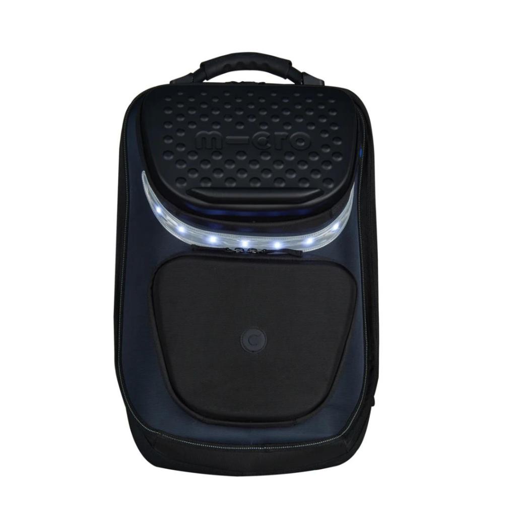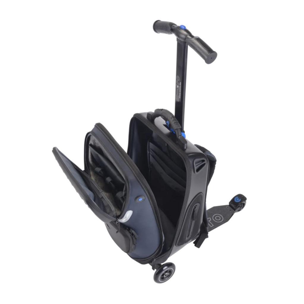 Genijalni komad opreme, pogodan za vozače težine do 100 kg / 15 stone 7 lbs. Micro Luggage skuter sam po sebi teži 5 kg / 11 lbs i ima kapacitet od 26 litara. Prednji točkovi Micro Luggage skutera mjere 100 mm, dok stražni točak ima 80 mm. Skuter doseže visinu do 96 cm, s produžnom ručkom. Kickpack ima integrisano svjetlo za savršenu vidljivost u mraku. Čak postoji i mjesto za odmor vašeg pametnog telefona ili tableta!