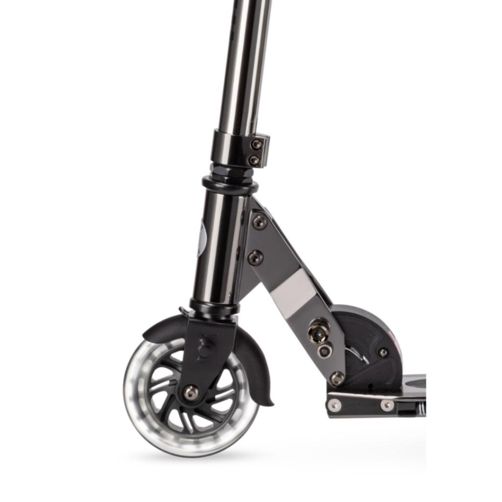 Sigurnost: Odaberite sigurnost uz Micro Sprite LED trotinet. Podesiva visina volana omogućava savršeno prilagođavanje različitim visinama vozača, dok široki i zakrivljeni volan pruža odličnu kontrolu i stabilnost. Čvrsta platforma ojačana staklenim vlaknima povećava stabilnost. Osim toga, LED svjetla u prednjim i zadnjim točkovima, koja rade bez baterija, poboljšavaju vidljivost pri slabijem svjetlu. Zahvaljujući laganom okviru, traci za prianjanje na platformi i lako upravljivoj kočnici, održavanje kontrole je jednostavno.