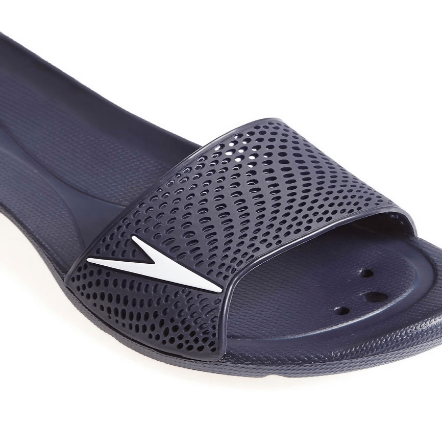 Ženske papuče za kupanje Speedo Atami II Max – tamnoplave/bijele Cipele za kupanje Atami II Max nude visok nivo udobnosti. Ne klizi na mokrim površinama i poboljšava cirkulaciju krvi u stopalu. Takođe garantuje optimalno pristajanje sa stilskim izgledom. Bilo na bazenu ili na plaži.