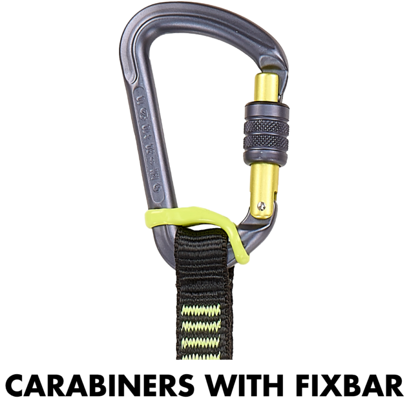 karabineri imaju Fixbar elemente za pozicioniranje koji sprječavaju rotaciju oko trake;